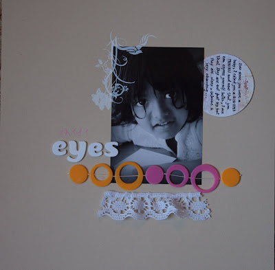 This idea came while I was working and the picture of my daughter came from a photo frame on my work table. Her intense EYEs prompted me to make this LO.