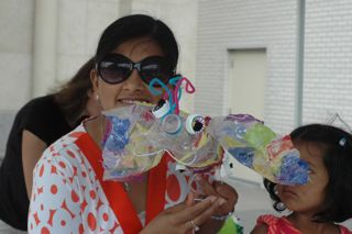 This was an out-doors project where we turned two coke bottles and a hanger into a dragonfly and then decorated it with gift wrap decoupage.